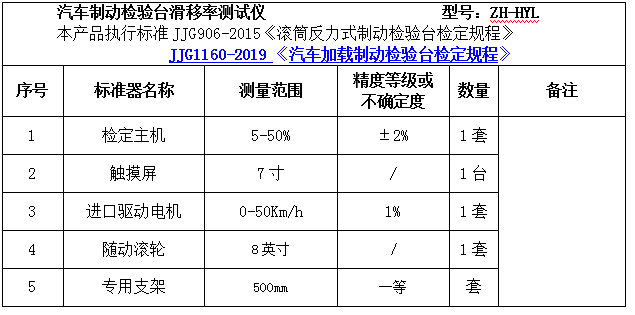 设备简介:制动测试台滑移率测试仪,通过设置靠轮磁座和带动轮,对制动测试台的滑移率进行测试时,控制器传输信号给电机以测得的初始速度驱动带动轮,再制动与减速,带动轮匀减速后的速度数据传输给控制器,在驱动电机自动停机瞬间,主滚筒线速度与第三滚筒的线速度之差与主滚筒线速度的百分比则得出了制动测试台滑移率,增加了测试台的测试精确度。该设备测试范围5~50%;示值误差(绝对值误差):±2%,具备精度高、实时记录数据、操作简单等优点。