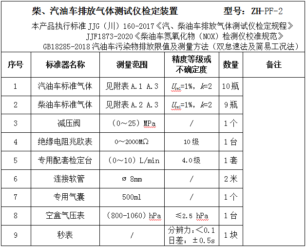 2.标准气体配制的标准值不超过表A.1所规定标准值的±15%。